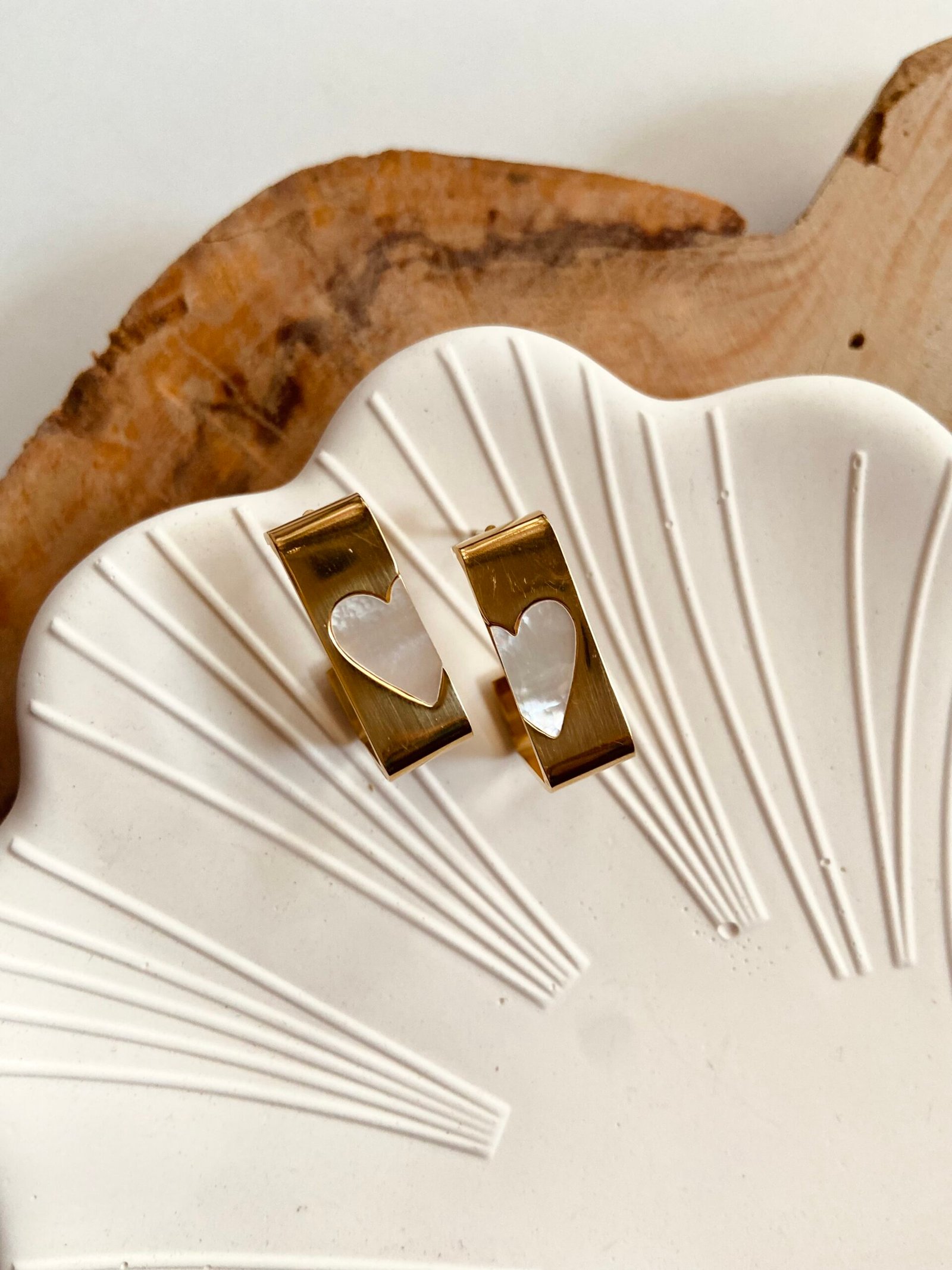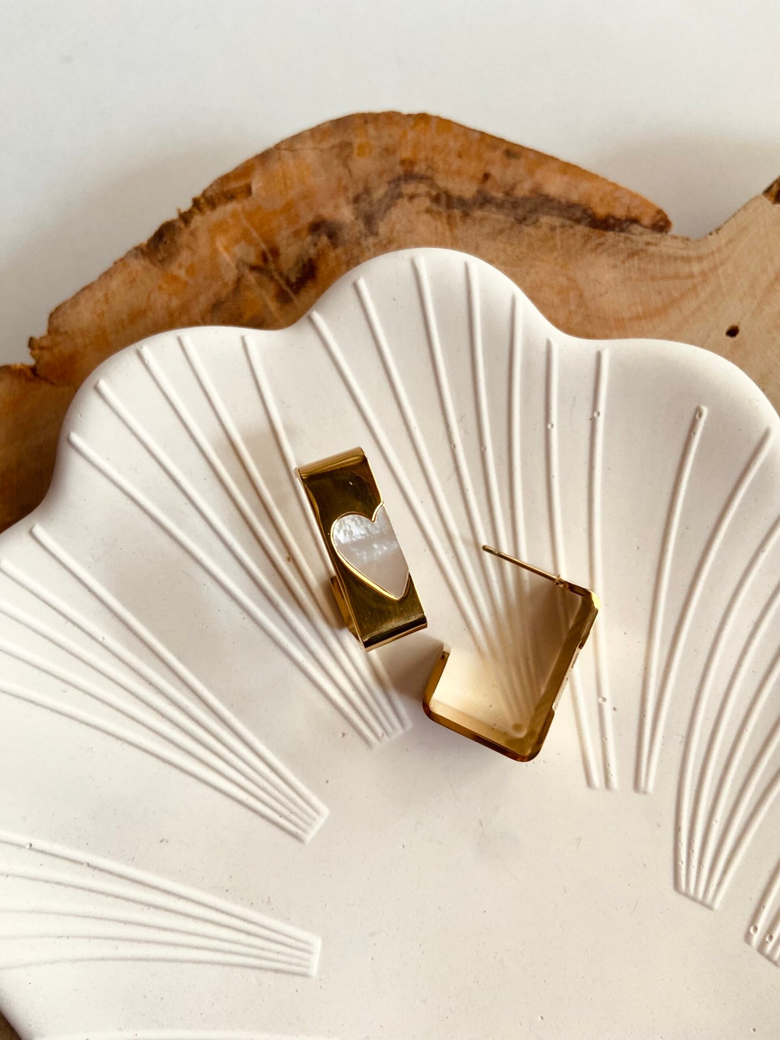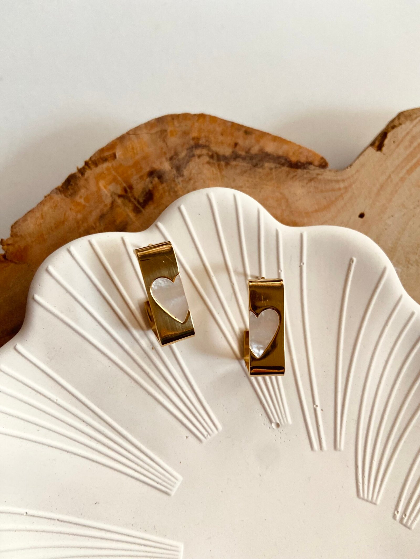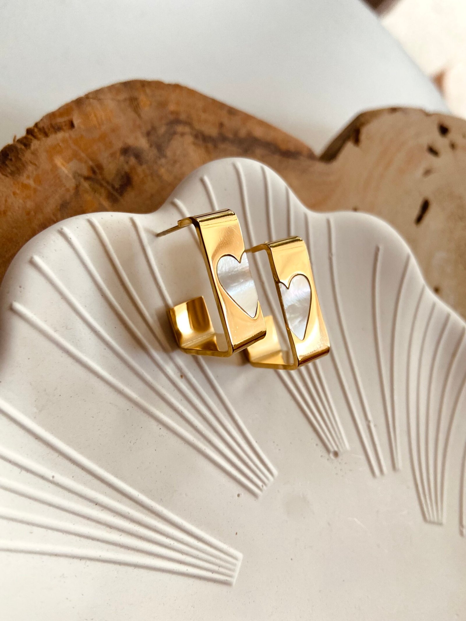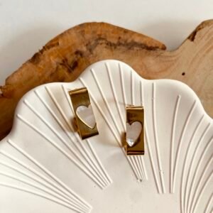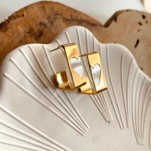 Kalpli Sedefli Çelik Gold Küpe, romantik tasarımı ve zamansız şıklığı bir araya getiriyor. Sedef detaylı kalp formu, gold rengin sıcak dokusuyla birleşerek hem günlük hem de özel gün kombinlerine uyum sağlar.