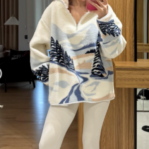 Soğuk havalarda hem konfor hem stil arayanlar için tasarlanan peluş geyik detaylı fermuarlı sweatshirt, içi şardonlu yapısı sayesinde gün boyu sıcak tutar. Oversize kalıbı ile rahat bir kullanım sunarken, fermuarlı tasarımı pratiklik sağlar.