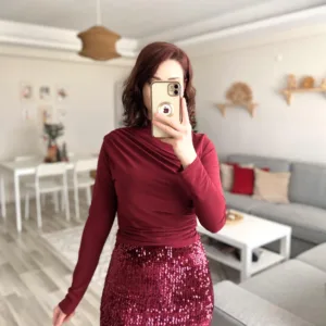 Tamamı parlak payetlerle kaplı yüzeyiyle her ışıkta dikkat çekerken, yumuşak astarı sayesinde cildinle dost bir konfor sunar.