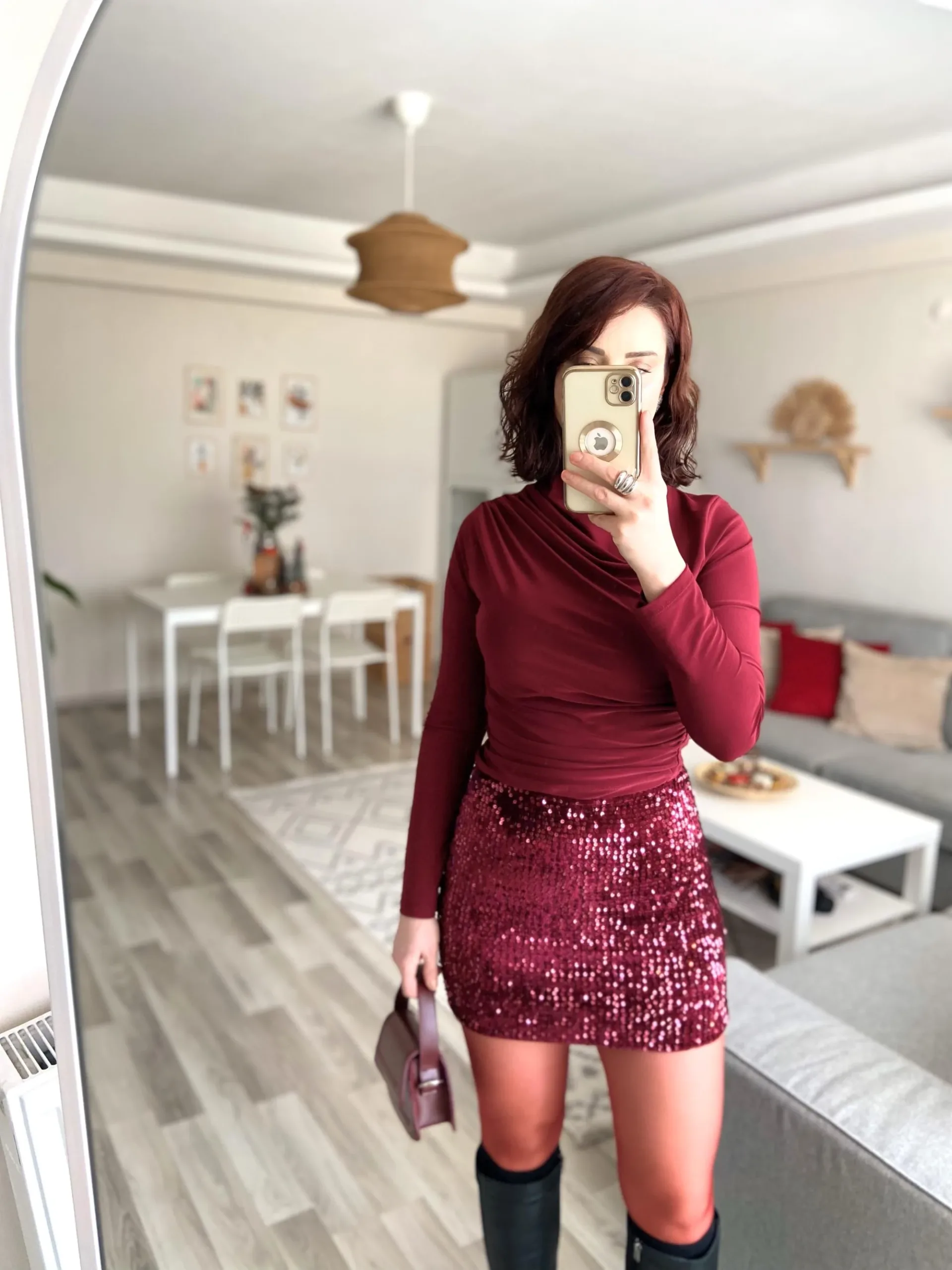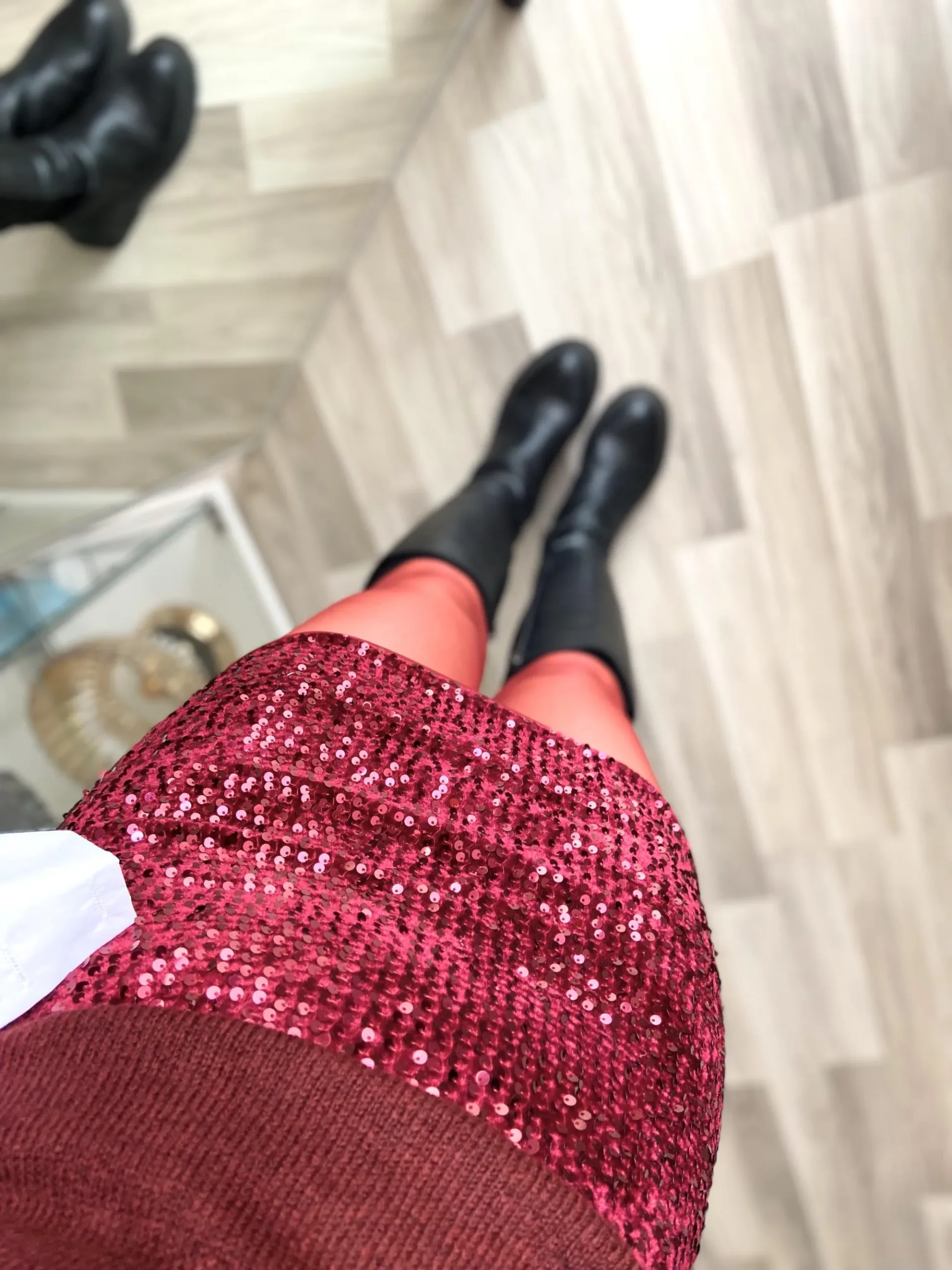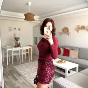 Işıltılı payetleriyle göz kamaştıran mini etek, iç astarı ve esnek beliyle konforu şıklıkla buluşturur.