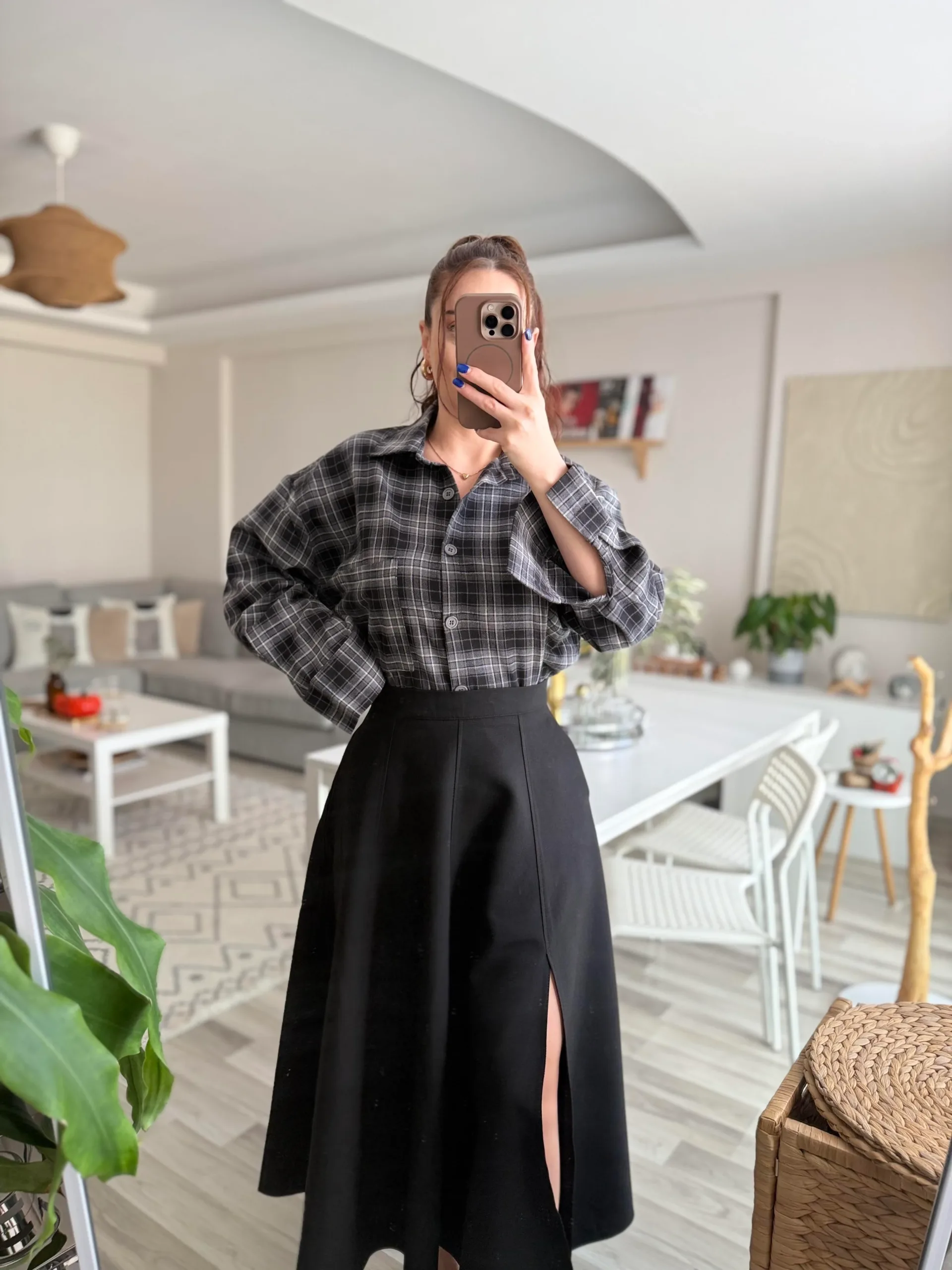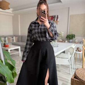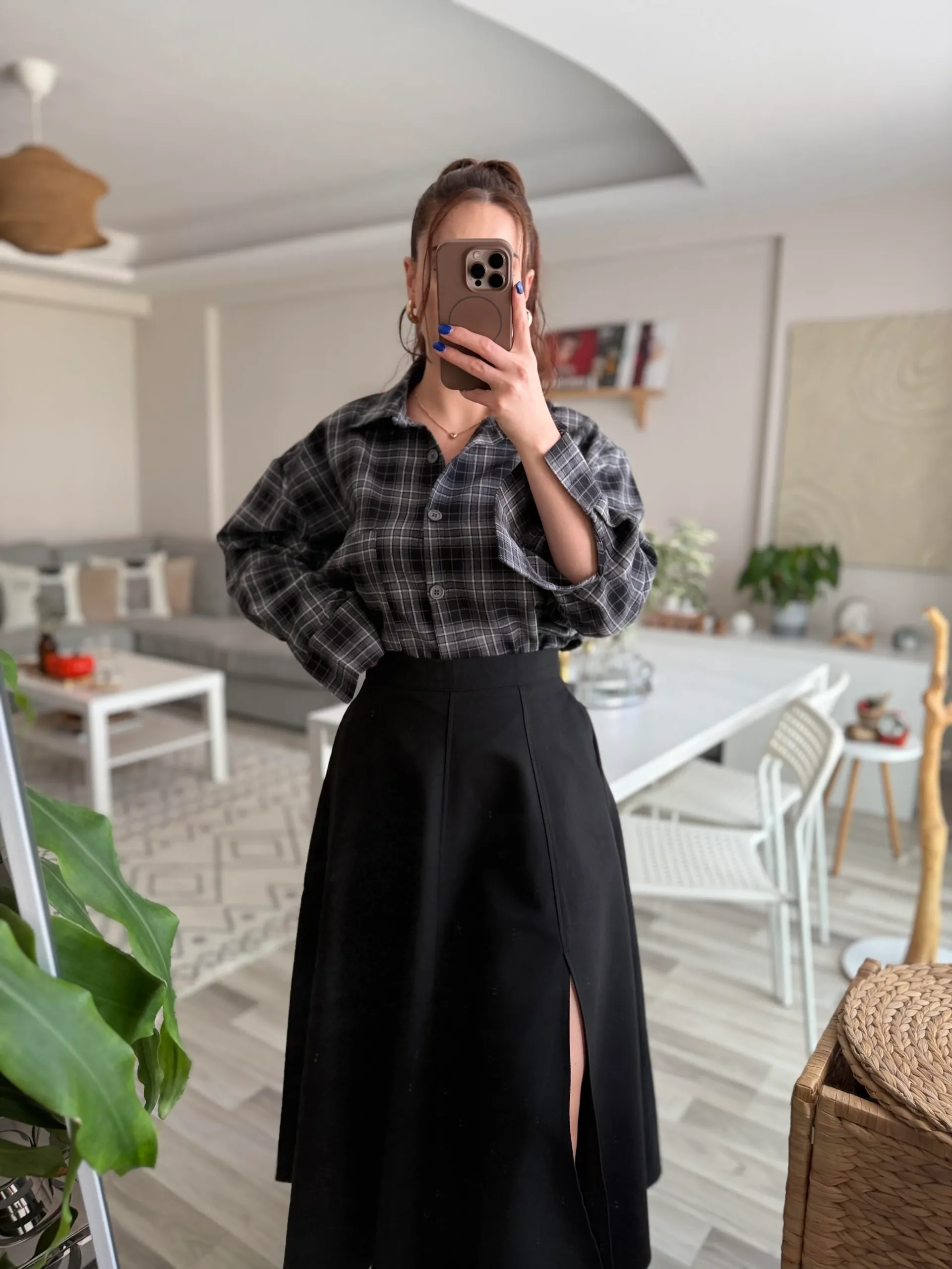 Günün her anına uyum sağlayan Siyah Premium Kalite Yırtmaçlı Uzun Etek, sade ama güçlü bir tarzın yansımasıdır.