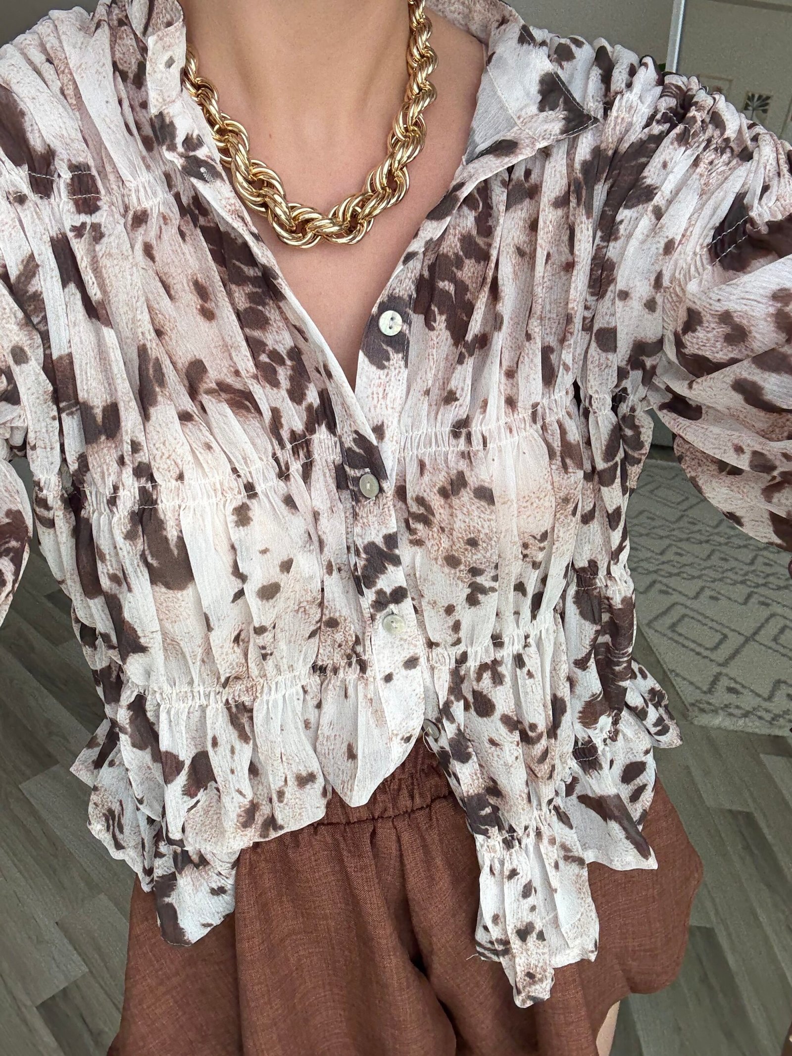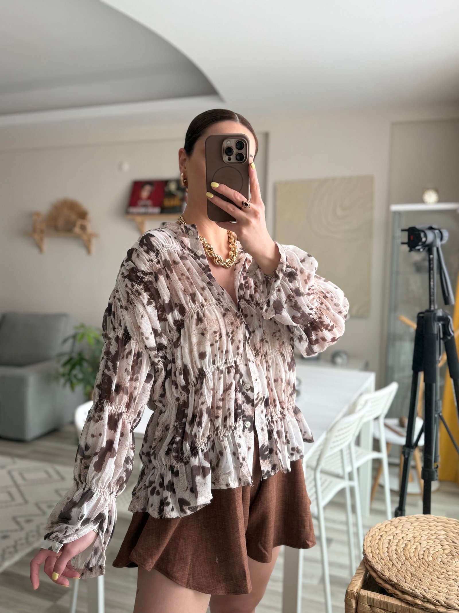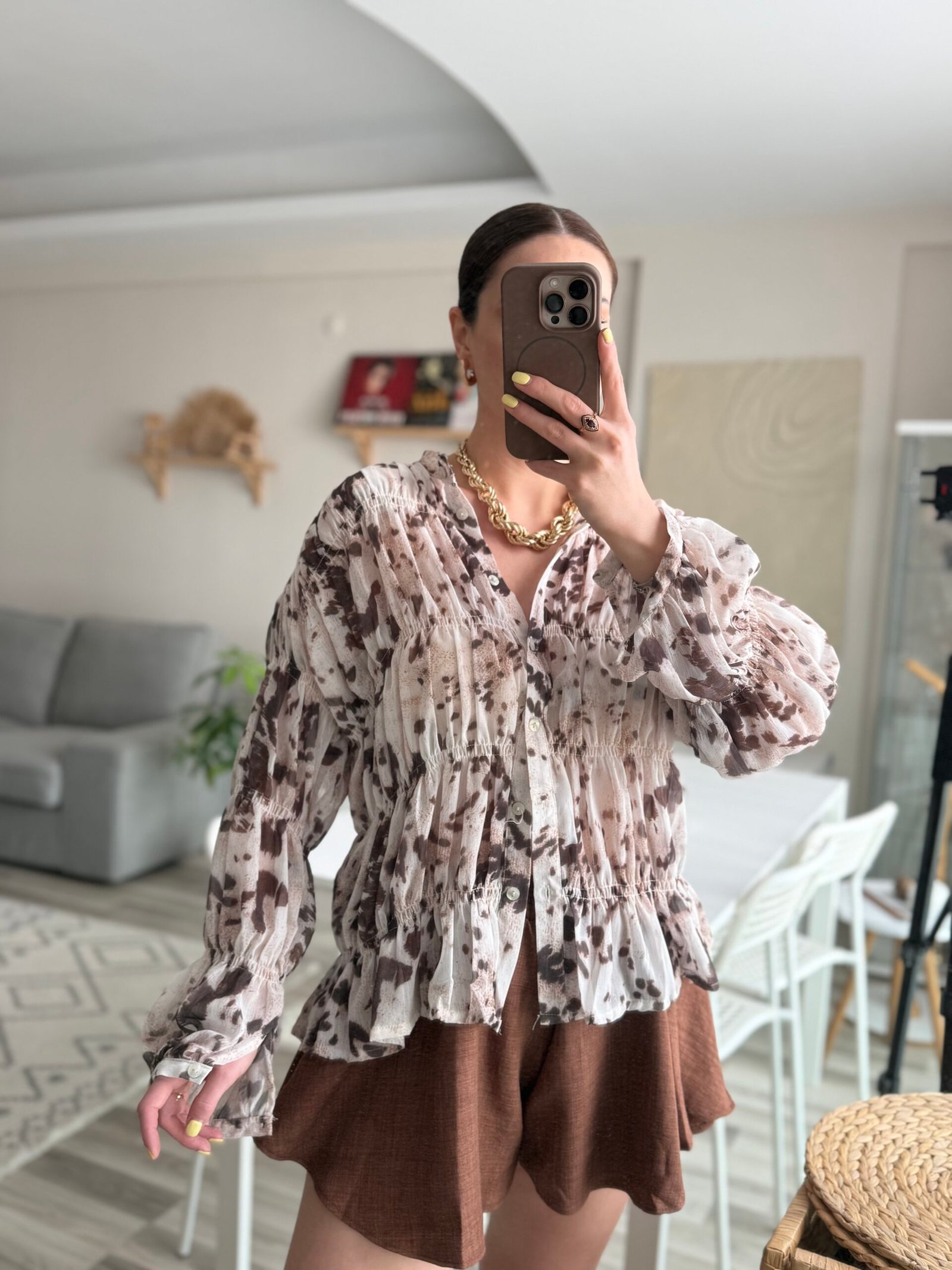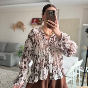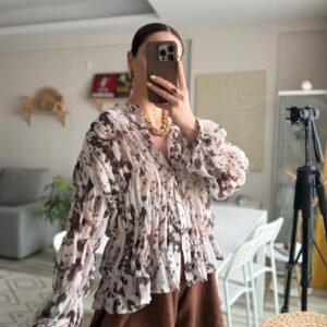 🌿Zamansız bir stile sahip olmak isteyenler için tasarlanan vintage şifon gömlek, ince dokulu kumaşıyla gün boyu hafiflik ve zarafet sağlar.